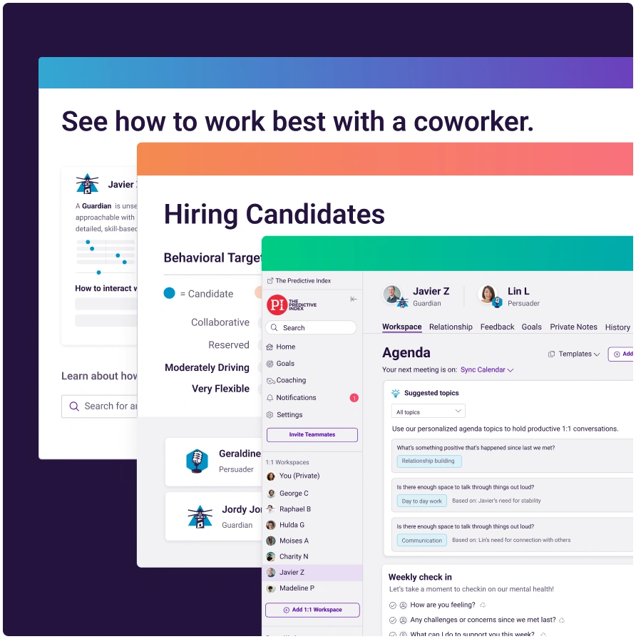 PI helps you turn your talent into your competitive advantage by leveling up every aspect of your employee experience. Get validated hiring, personalized leadership development, continuous performance management, communication, and employee engagement tools all in one platform.